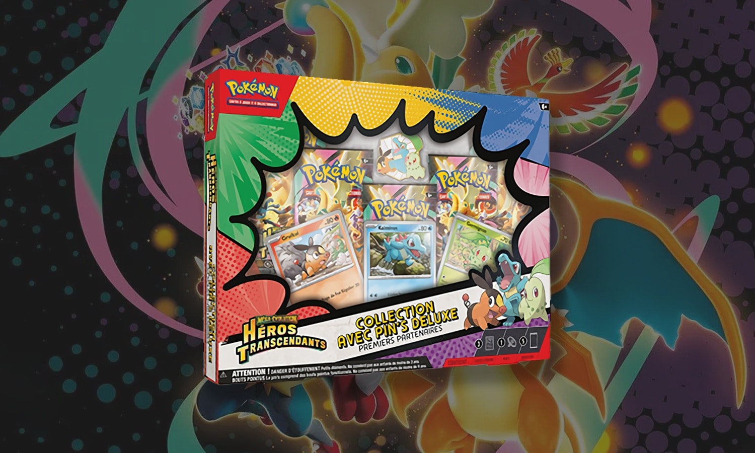 L’extension Méga-Évolution – Héros Transcendants explore le potentiel ultime des starters emblématiques de Johto, avec des cartes rares, brillantes et stratégiques. Ce coffret vous permet non seulement de retrouver les origines de votre aventure Pokémon, mais aussi de plonger dans l’univers étendu des Méga-Évolutions, en ouvrant cinq boosters pleins de surprises. Que vous soyez collectionneur, joueur ou passionné par les starters, cette Collection Pin’s Deluxe est une célébration idéale de votre lien avec vos premiers compagnons Pokémon.