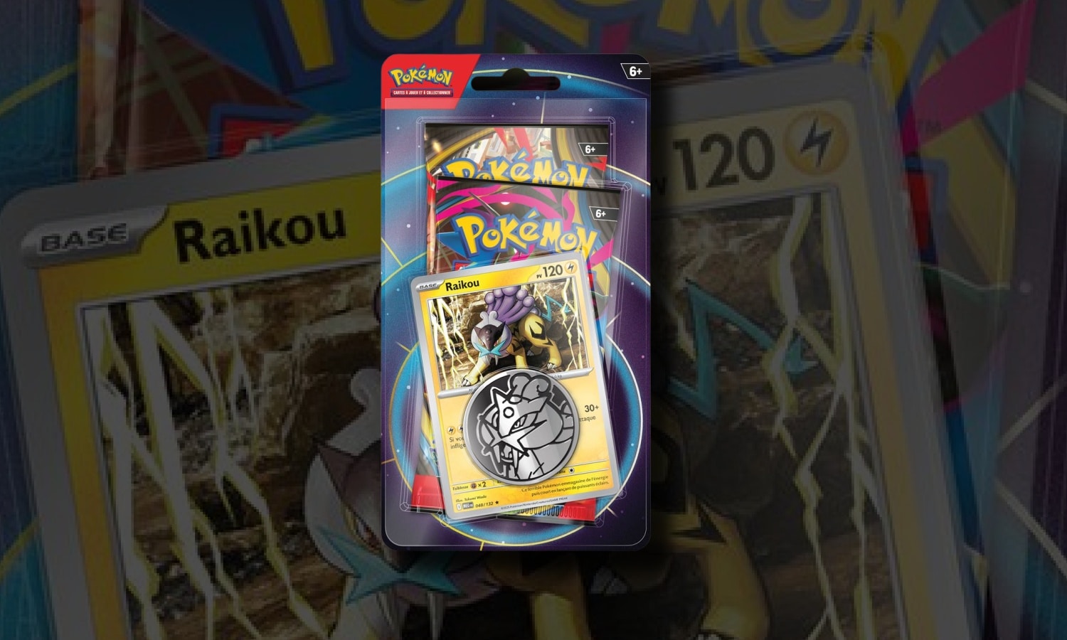 Pokémon Pack 2 Boosters Blister Raikou. Ce Duo pack est conçu pour les collectionneurs et joueurs du Jeu de Cartes à Collectionner Pokémon qui souhaitent enrichir leur collection ou améliorer leur jeu. Il comprend deux boosters proposant chacun un assortiment aléatoire de cartes, des cartes brillantes spéciales et une carte à code destinée à l’utilisation en ligne.