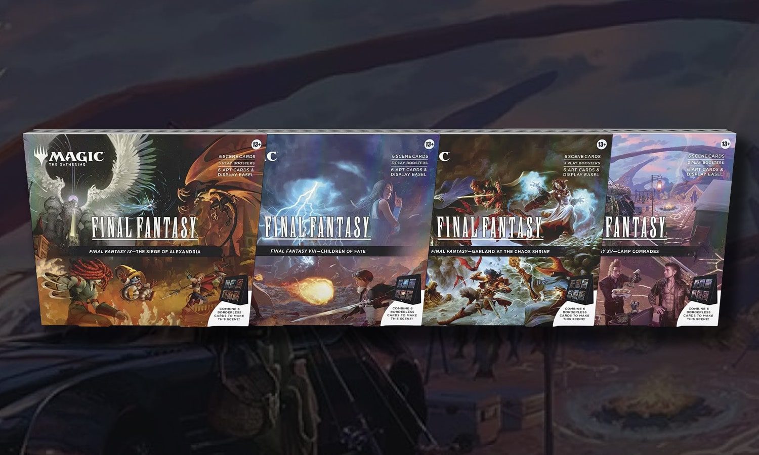 Magic The Gathering Scene Box Final Fantasy aléatoire. Ces coffrets s’adressent aux passionnés de jeux de cartes et aux amateurs de cultures vidéoludiques. Ils proposent des univers illustrés et des mécaniques de jeu à travers des cartes sélectionnées qui mettent en avant des séquences symboliques liées à une franchise majeure. Chaque boîte offre des éléments jouables ainsi que des objets destinés à la présentation, combinant ainsi l’expérience ludique et la collection.