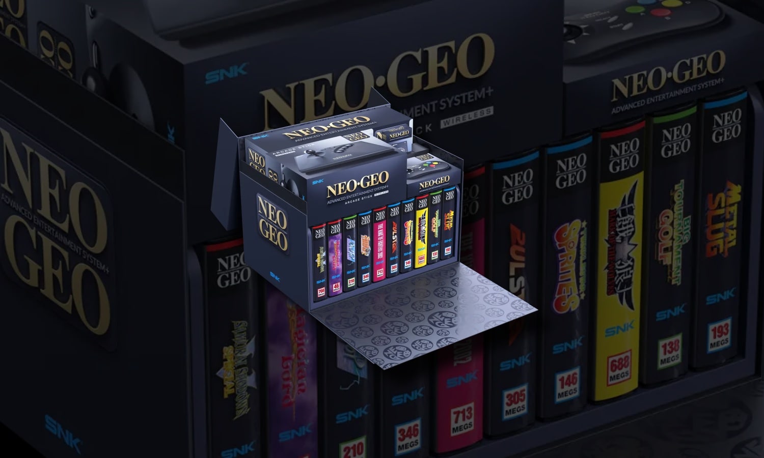 La bibliothèque de dix jeux fournie avec la console couvre un large spectre des genres qui ont fait la renommée de la plateforme. On y retrouve des titres de combat emblématiques tels que Garou: Mark of the Wolves, The King of Fighters 2002 et Samurai Shodown, ainsi que des jeux d’action et de run and gun comme Metal Slug et Shock Troopers. Des références issues des genres du shoot’em up, avec Pulstar et Twinkle Star Sprites, de la simulation sportive, avec Big Tournament Golf et Over Top, et du jeu d’action-plateforme, avec Magician Lord, complètent l’ensemble.