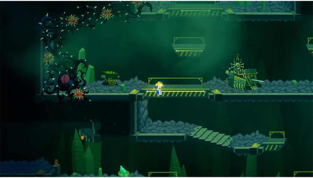 La progression repose sur l’exploration approfondie de chaque biome. Les différents niveaux présentent des environnements diversifiés, comme des zones glacées ou des laboratoires industriels, chacun bénéficiant d’une identité visuelle marquée et d’une construction soignée. Les ennemis varient selon les lieux et nécessitent d’adapter ses stratégies en fonction des dangers rencontrés. L’exploration propose plusieurs parcours, accessibles en fonction des compétences acquises, ce qui encourage la curiosité et la recherche de passages secrets.