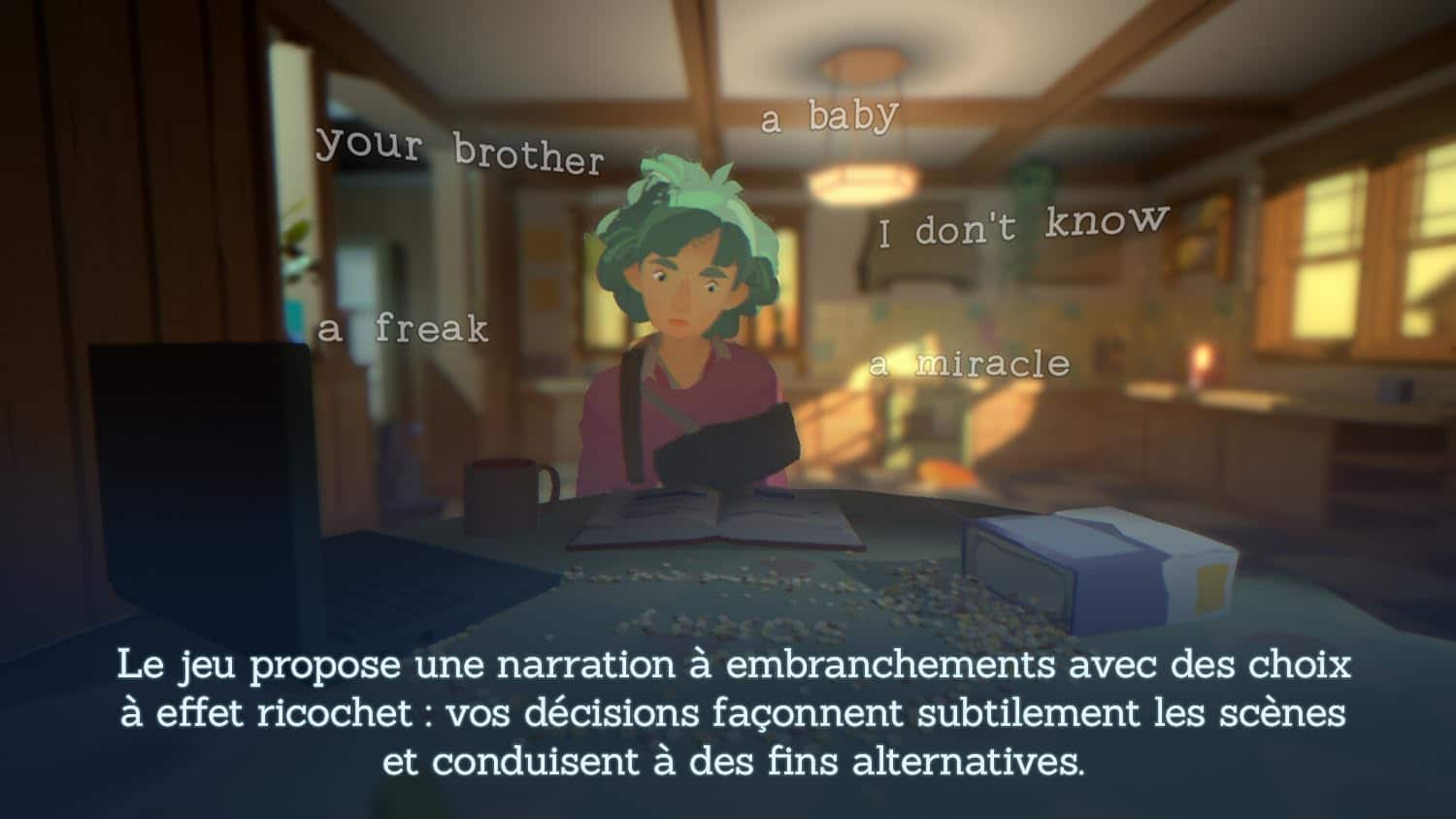 Au cœur du jeu, le joueur incarne Isaac, un nourrisson de six mois doté de dons particuliers, cherchant à trouver sa place au sein de sa famille. Les décisions prises à différents moments modifient les relations d’Isaac et l’orientation des événements, offrant des ramifications multiples et des fins alternatives. Cette structure narrative encourage le joueur à observer l’impact progressif de ses choix, ouvrant une variété de scénarios.