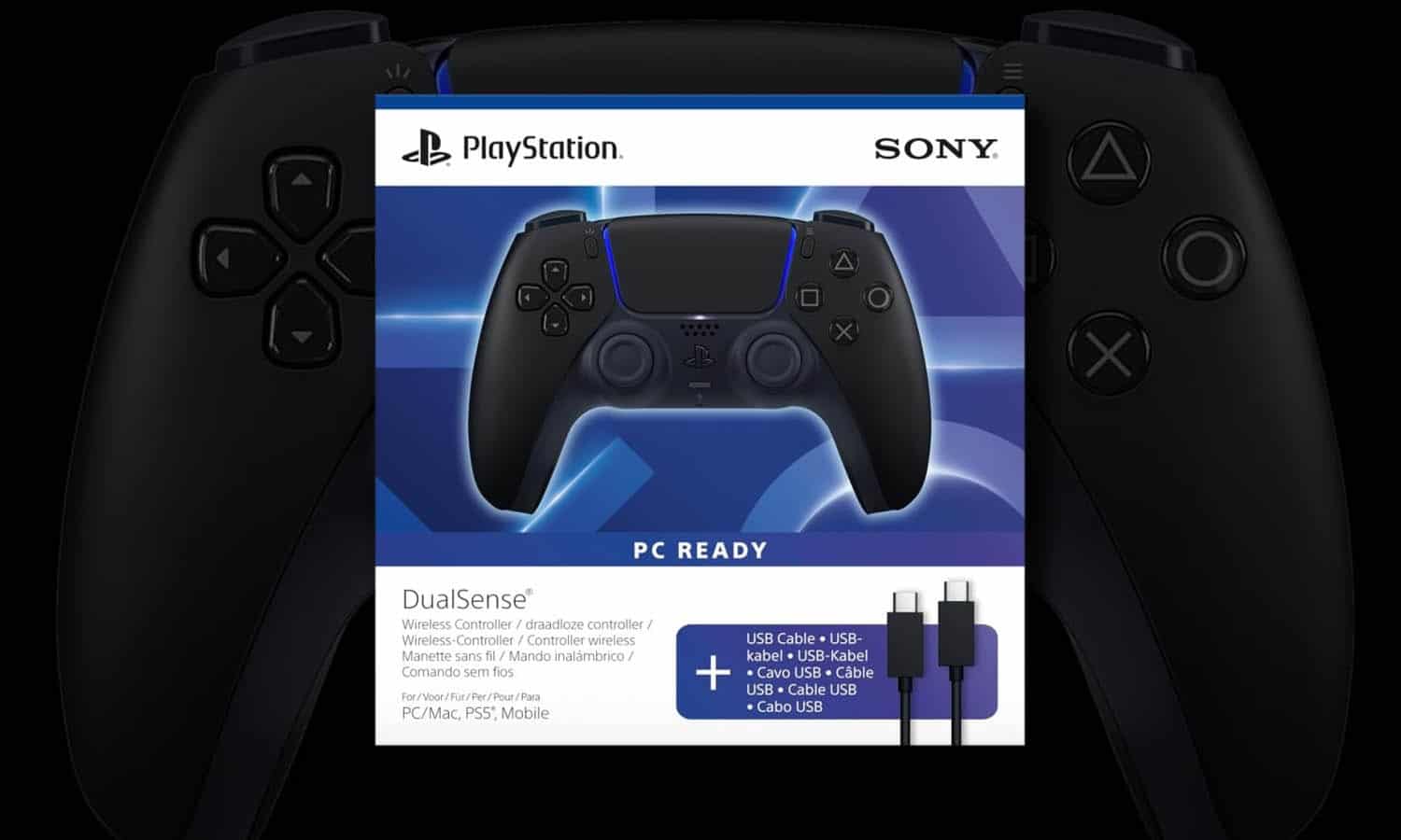 Manette PS5 Midnight Black avec câble USB pour PC