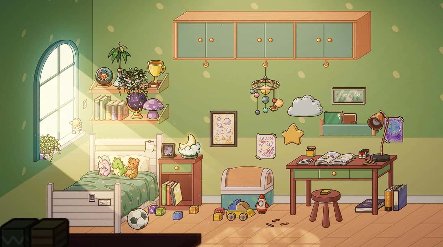 Le principe central consiste à sélectionner des éléments de mobilier et des objets décoratifs, puis à les disposer dans la pièce de manière intuitive. La démarche n’est pas uniquement esthétique : les choix de décoration sont conçus pour influencer la vie du personnage. La progression s’étend de l’enfance à l’âge adulte, ce qui donne à chaque aménagement une portée narrative, sans imposer une lecture unique. La chambre devient un espace-mémoire où l’organisation, l’accumulation ou la simplicité peuvent suggérer des étapes, des habitudes et des attachements.