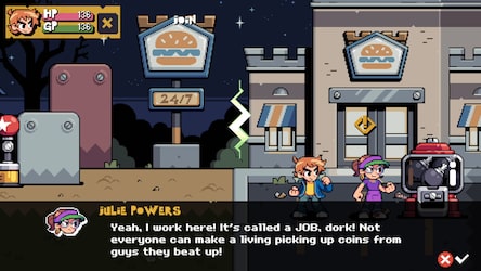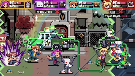 Le jeu propose 7 personnages jouables, chacun doté d’un style de combat qui lui est propre. Les joueurs peuvent incarner Scott Pilgrim, Ramona Flowers, Matthew Patel, Gideon Graves, Lucas Lee, Roxie Richter et Robot-01. Cette diversité de personnages, dont certains étaient auparavant des antagonistes dans l’univers d’origine, offre des approches de jeu distinctes selon le choix effectué. Le système de combat repose sur une logique instinctive et improvisée, permettant d’enchaîner des combos, d’utiliser des armes aux caractéristiques variées et de déclencher des attaques spéciales. L’ensemble du gameplay favorise l’expérimentation et l’adaptation aux situations rencontrées au fil des niveaux.