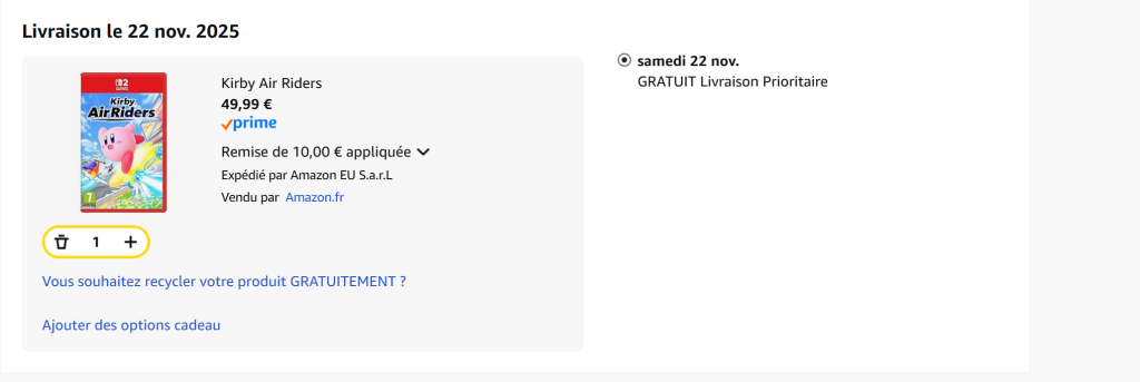 Dès lors qu’on ajoute le cadeau alors le tout repasse à 69,99