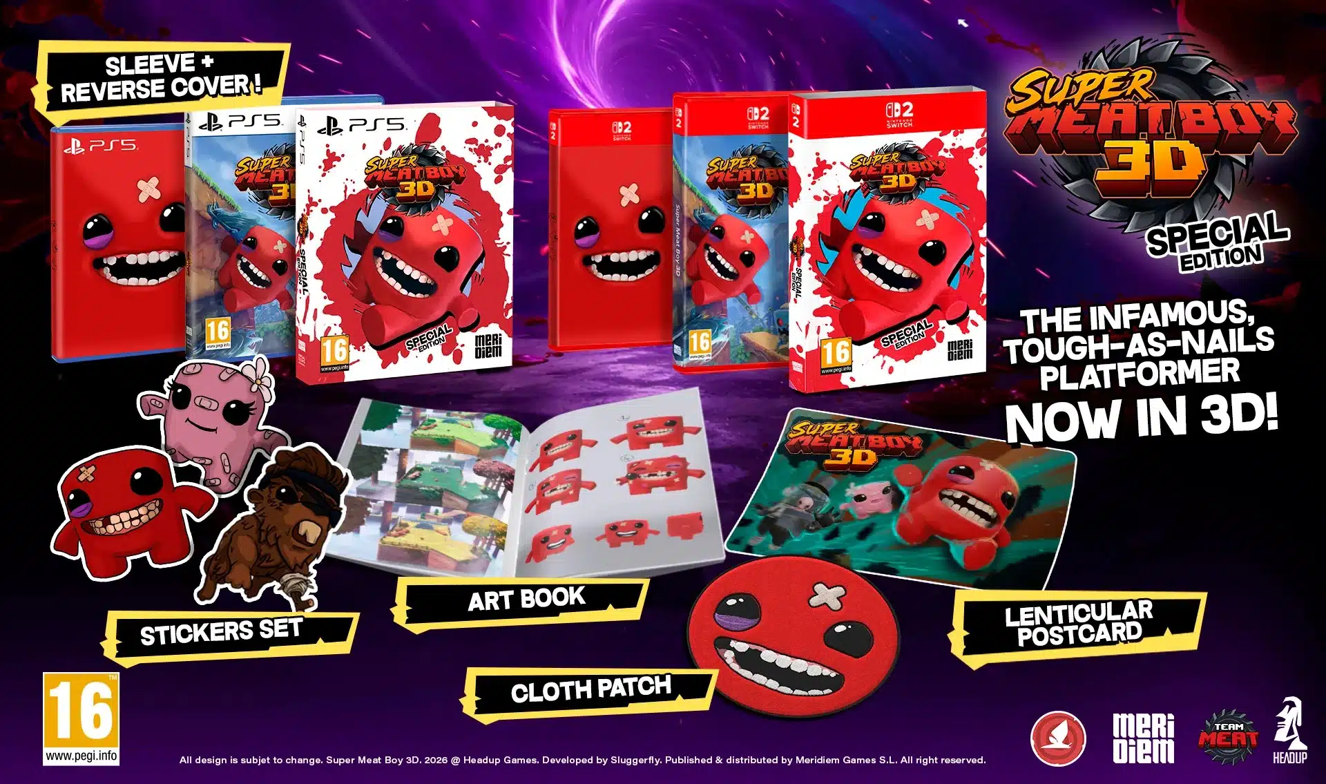Super Meat Boy 3D Special Edition Switch 2. Meat Boy, sous la houlette du studio Sluggerfly, propulse la célèbre licence de plateforme dans une nouvelle dimension, littéralement.