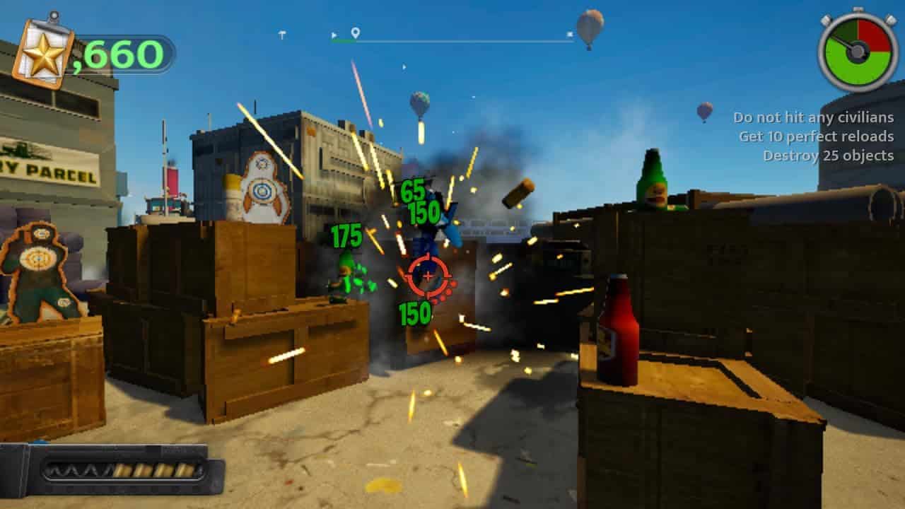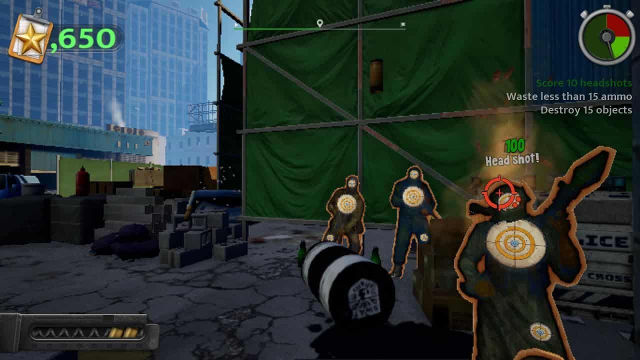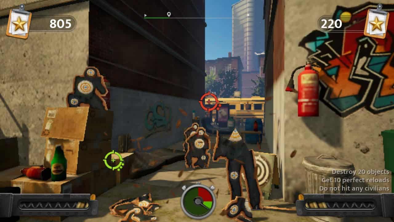 Le jeu propose des défis structurés autour d’un concept d’entraînement rigoureux et original, où le joueur incarne un officier d’élite en phase de perfectionnement au tir. Les sessions, rythmées par des séquences rapides, sollicitent les réflexes, la précision et l’observation. Le jeu se déroule dans neuf environnements distincts aux couleurs vives, ce qui permet de renouveler l’expérience sur un ensemble de soixante niveaux.