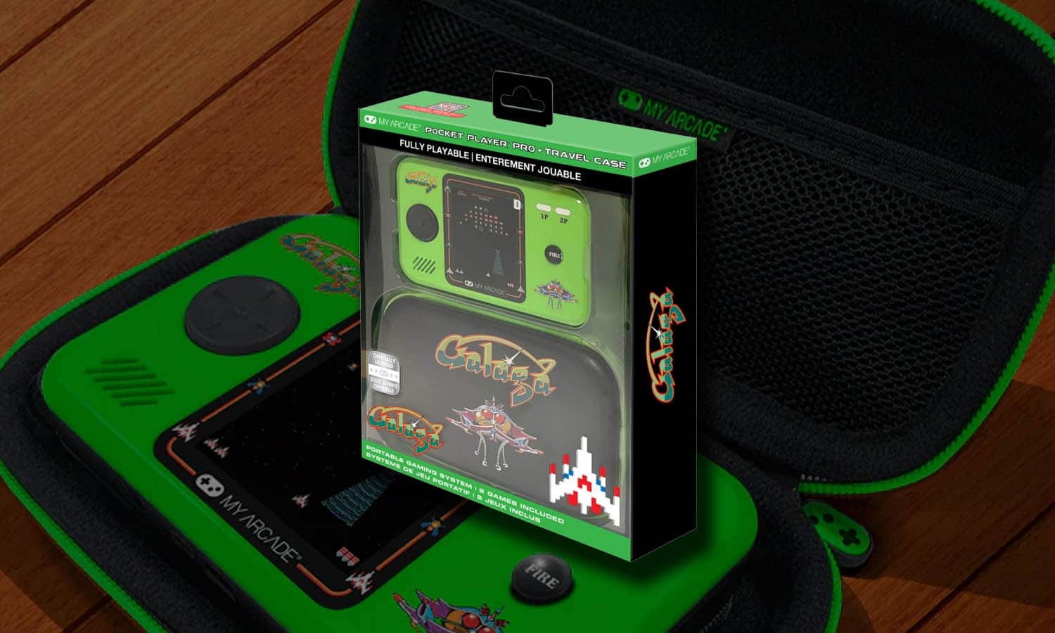 My Arcade Pocket Player Galaga + Etui de transport. Ceta appareil portable propose une adaptation fidèle de l’expérience du jeu vidéo d’arcade, combinant des sensations classiques avec des fonctionnalités contemporaines pour une utilisation quotidienne. Il permet de profiter de plusieurs jeux emblématiques du shoot’em up dans un format compact, accompagné d’accessoires visant à faciliter la protection et le transport.