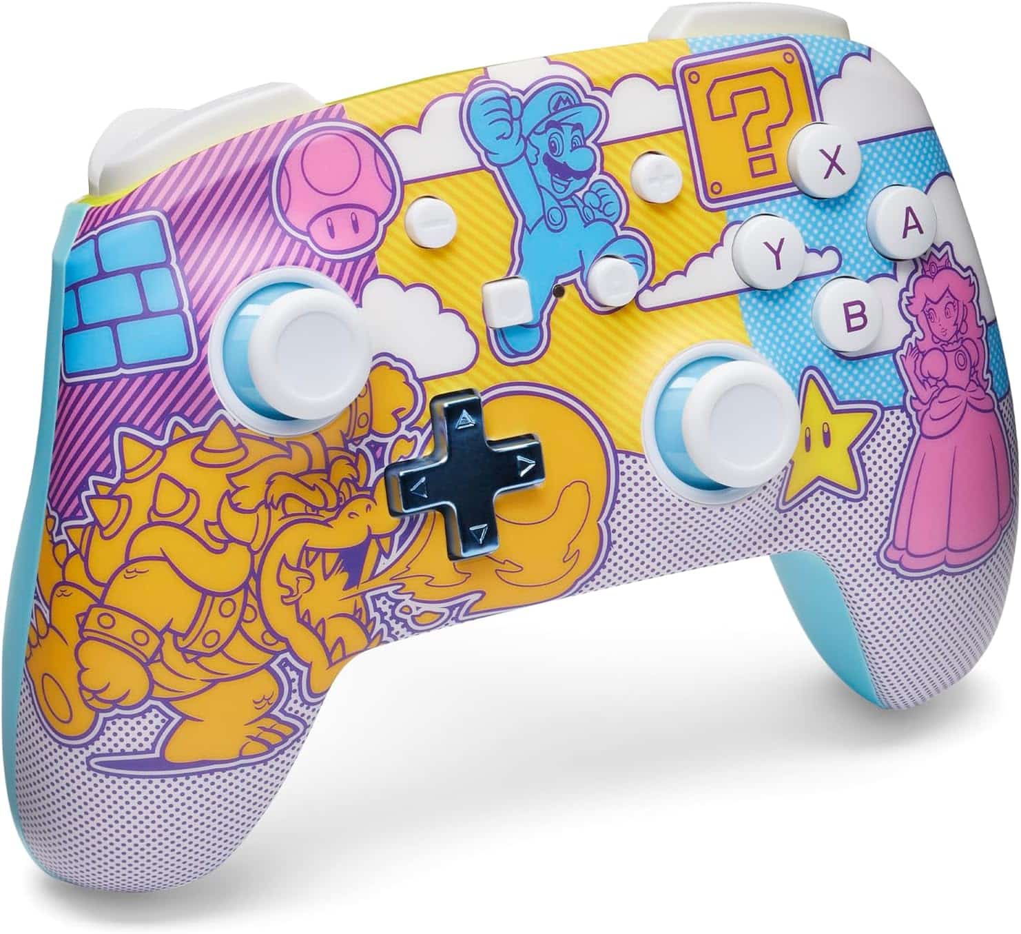 Manette sans fil Switch Power A Mushroom Kingdom. Ce modèle de manette sans fil, sous licence officielle Nintendo Switch, associe une technologie avancée à une conception ergonomique spécialement pensée pour des sessions de jeu prolongées.