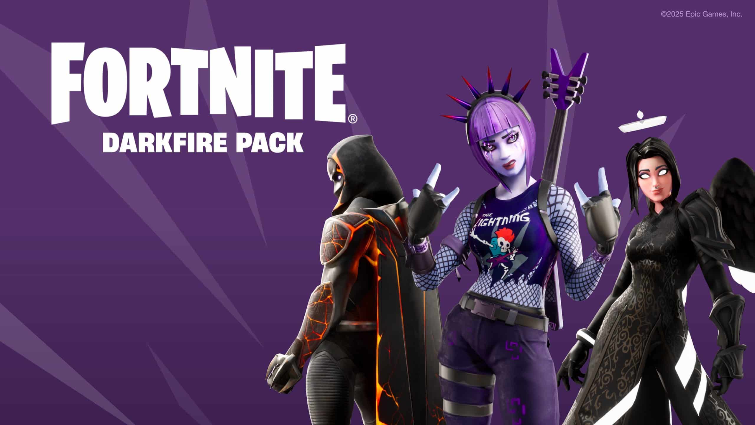 - Le Pack Feu Obscur qui comprend trois tenues (Pro du riff sombre, Présage ardent, Archange noire), leurs versions LEGO, trois accessoires de dos, trois revêtements, trois pioches à deux mains et une emote