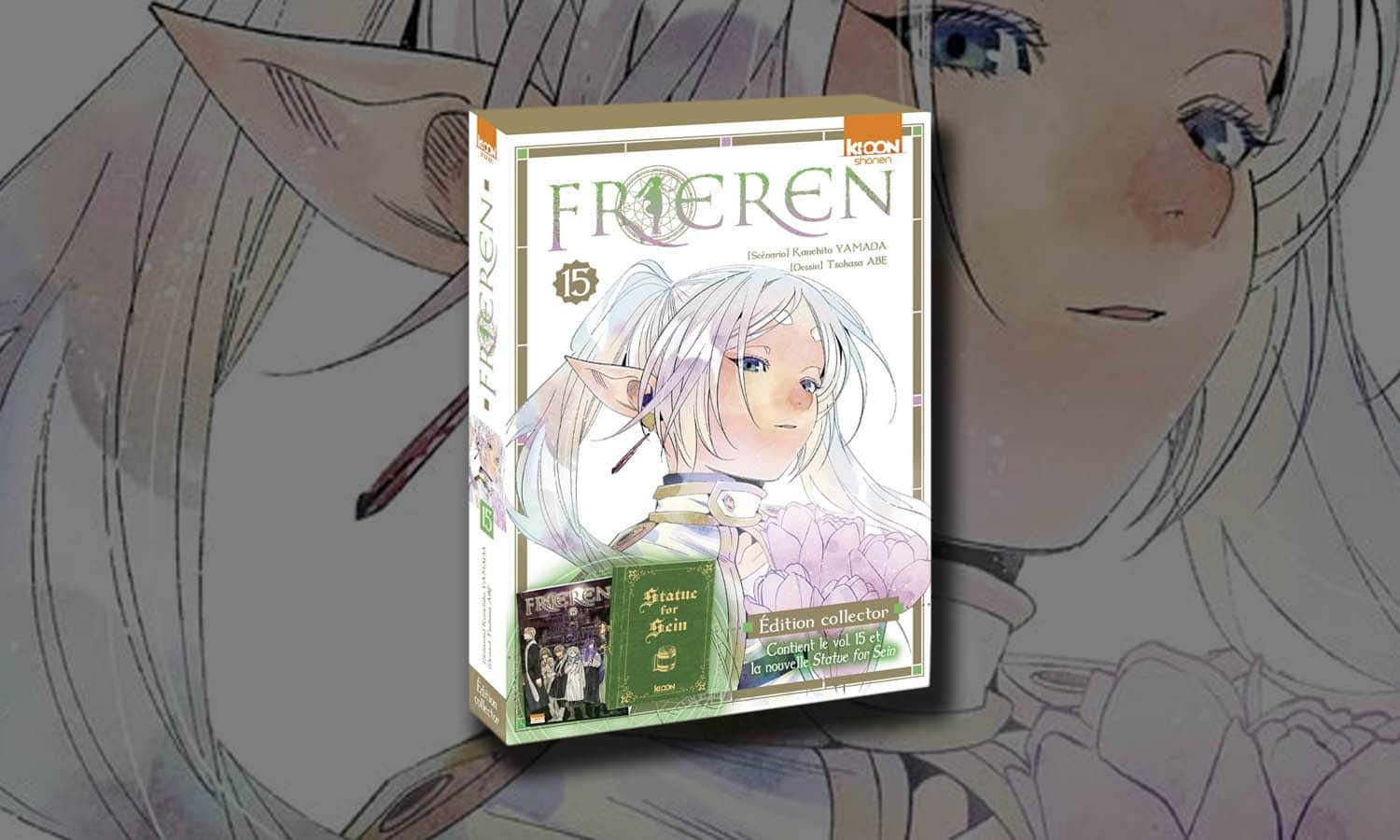 Frieren Tome 15 Collector. Cette édition prolonge une aventure contemplative et poignante, devenue une référence du manga de fantasy moderne. Elle réunit un exemplaire du volume 15 avec une jaquette alternative réversible ainsi que la nouvelle inédite en France Statue for Sein, enrichissant l’univers sensible imaginé par ses auteurs.