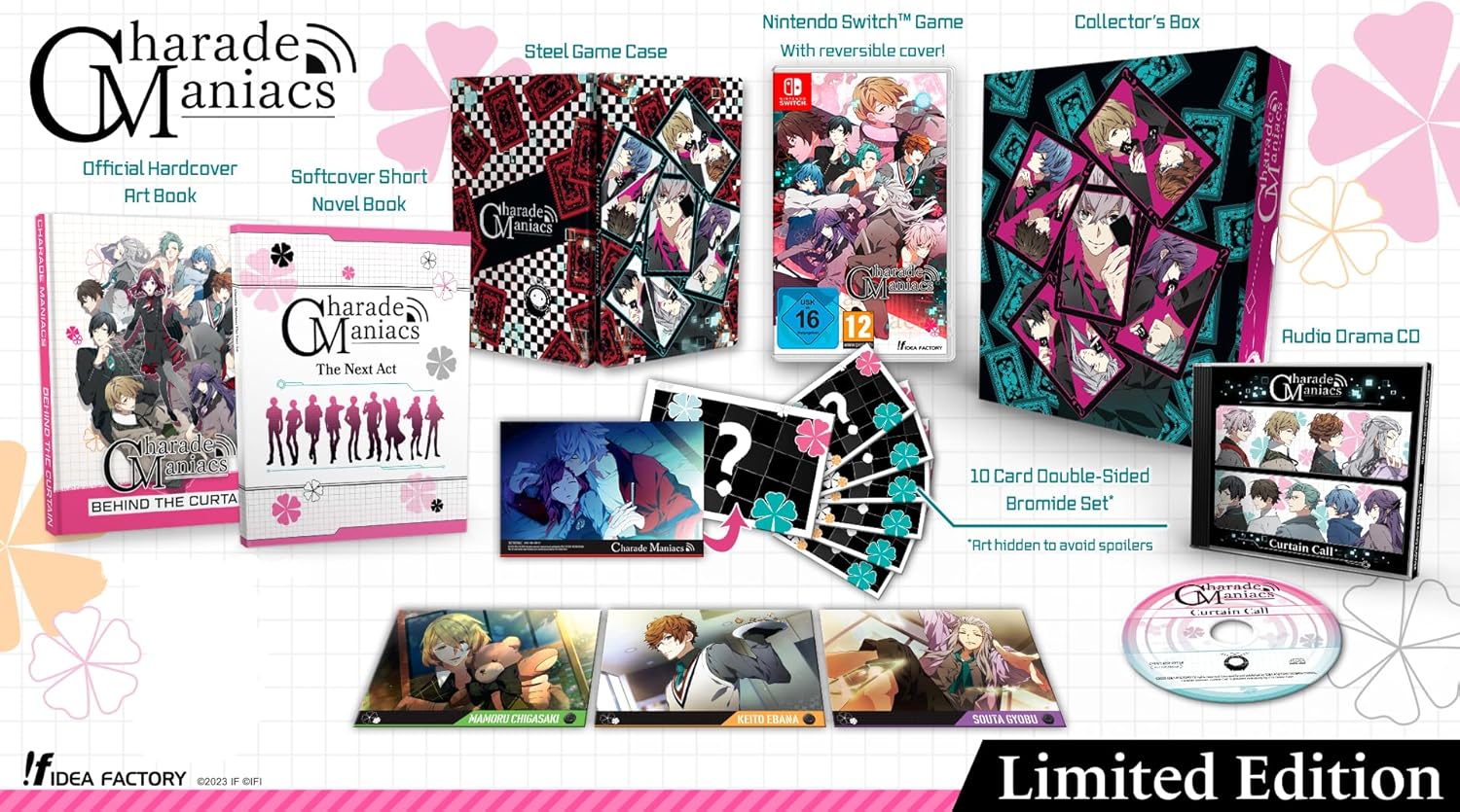 Charade Maniacs Limited Edition Switch. Hiyori Sena, une jeune femme ordinaire, est brusquement enlevée par une entité mystérieuse et transportée dans un monde inconnu appelé Arcadia. Elle y découvre neuf autres personnes, elles aussi kidnappées contre leur gré. Pour espérer retrouver leur liberté, tous ces individus sont contraints de jouer des pièces dramatiques, appelées dramas, sous la supervision de leur ravisseur. La situation se complique davantage : parmi ces dix captifs se cache un traître, prêt à tout pour compromettre leurs efforts collectifs. Dans ce contexte de méfiance et d’urgence, Hiyori devra mener ses propres investigations, nouer des liens et, peut-être, trouver l’amour.