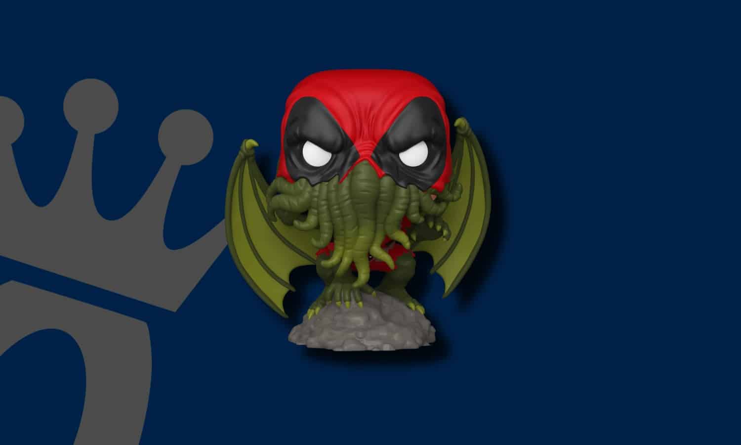Funko Pop Deadpool as Cthulhu Glow. Deadpool fusionne avec l’entité mythique Cthulhu dans cette version unique qui propose une finition phosphorescente. Le personnage Marvel, reconnu pour son humour décapant, adopte ici une apparence monstrueuse inspirée de l’univers de Lovecraft et du folklore geek.