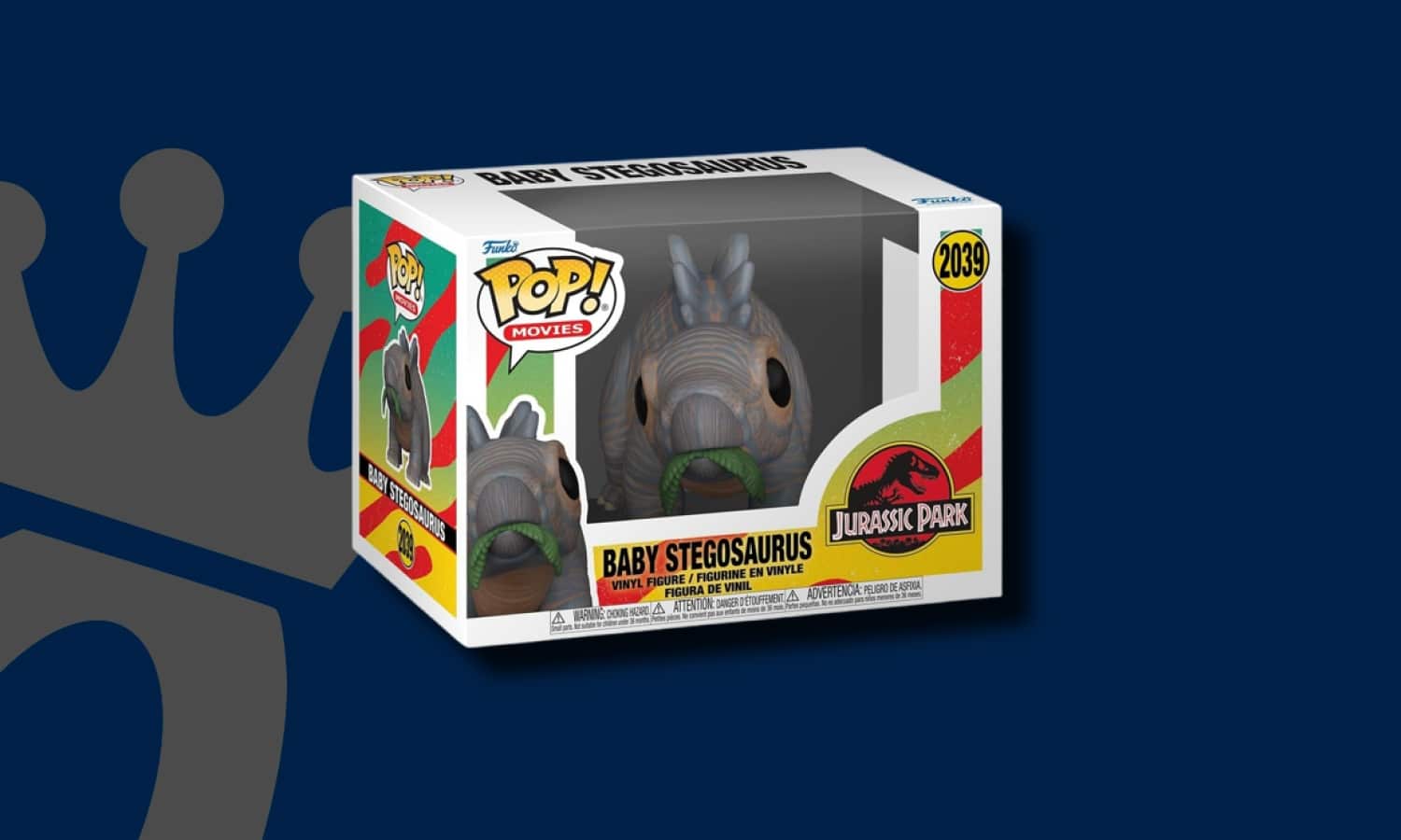 Funko Pop Jurassic Park Baby Stegosaurus. Bébé stégosaure issu de l’univers Jurassic Park, la saga de films portée par Universal Pictures et Amblin Entertainment. Ce jeune dinosaure herbivore reprend les codes visuels de la gamme Pop Movies, avec ses plaques dorsales et ses grands yeux stylisés. Une pièce dédiée aux créatures emblématiques du parc et aux collectionneurs de la licence.