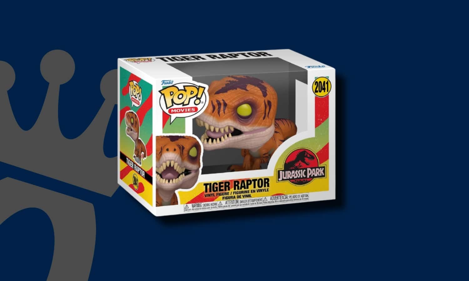 Funko Pop Jurassic Park Tiger Raptor. Tiger Raptor est un vélociraptor de l’univers Jurassic Park, la franchise de films de Universal Pictures. Cette version met en avant une livrée orange et noire rappelant un pelage tigré, avec une posture agressive, dents apparentes et regard fixe. Un ajout centré sur les prédateurs emblématiques du parc, pour compléter la galerie de dinosaures.