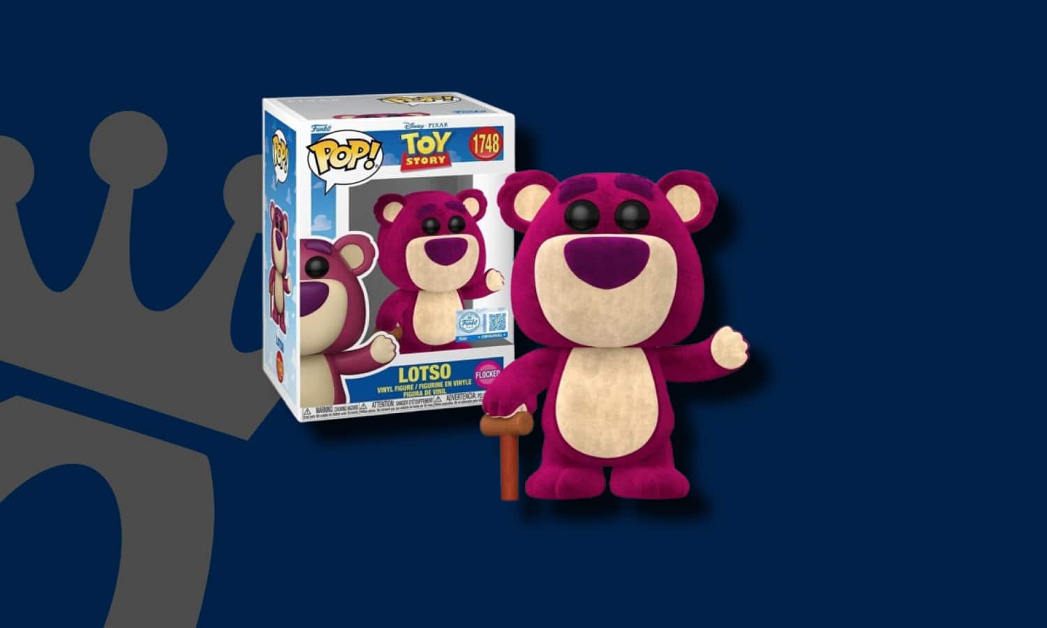 Funko Pop Toy Story Lotso (Velour). Lotso est un personnage du film d’animation Toy Story 3, sorti en 2010. Cet ours en peluche rose à l’odeur de fraise est le antagoniste principal du récit. La figurine Funko Pop Velour reproduit sa texture caractéristique de peluche, offrant un rendu tactile distinctif apprécié des collectionneurs de la licence.