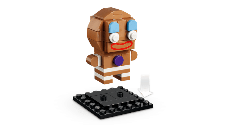 Les deux autres personnages du set ne sont pas en reste. L’Âne, compagnon inséparable de l’ogre, et Ti Biscuit, le petit guerrier en pain d’épice, complètent ce trio qui symbolise à lui seul l’esprit de la saga. Leurs formes caractéristiques, fidèlement transposées dans le style arrondi et cubique propre à la ligne BrickHeadz, permettent de les reconnaître sans ambiguïté. L’ensemble constitue ainsi une représentation cohérente et visuellement équilibrée des trois héros.