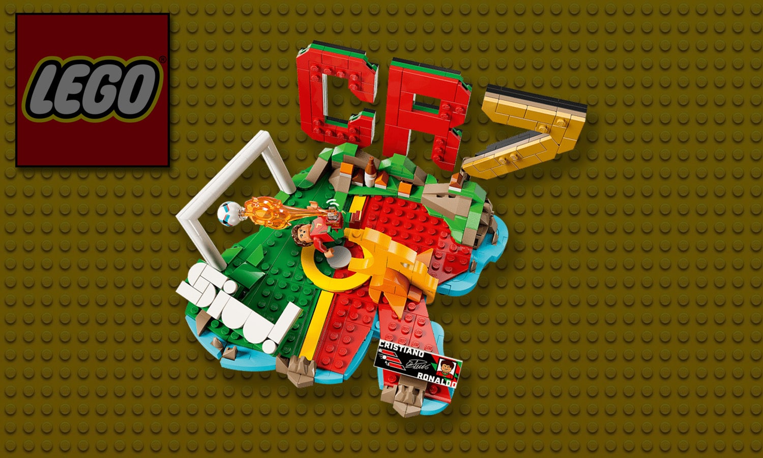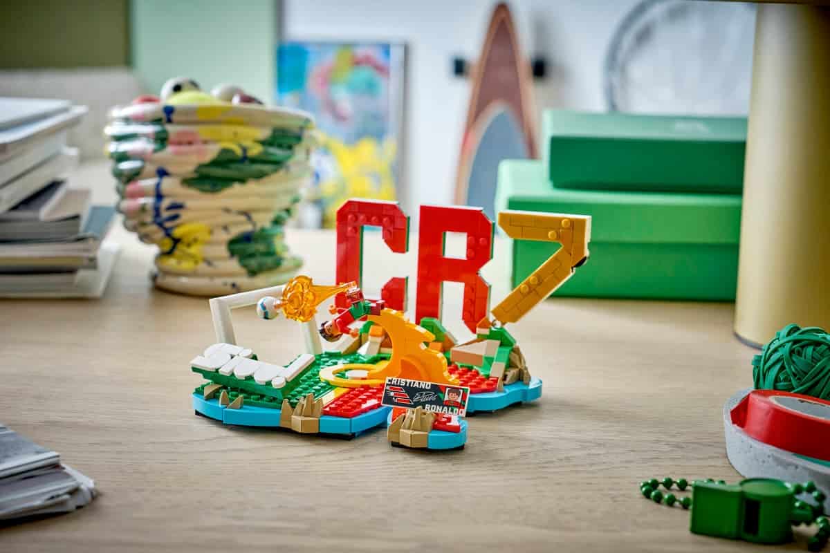 Du point de vue de l’usage, l’objet final se situe entre construction créative et décor thématique, avec une orientation clairement axée sur l’exposition. Il peut être manipulé pendant l’assemblage, puis placé comme décoration sportive. La structure est pensée pour rester lisible à distance grâce aux éléments de grande taille comme le sigle CR7 et la base aux couleurs nationales, tandis que les détails plus discrets, comme les surprises cachées, s’apprécient davantage de près.