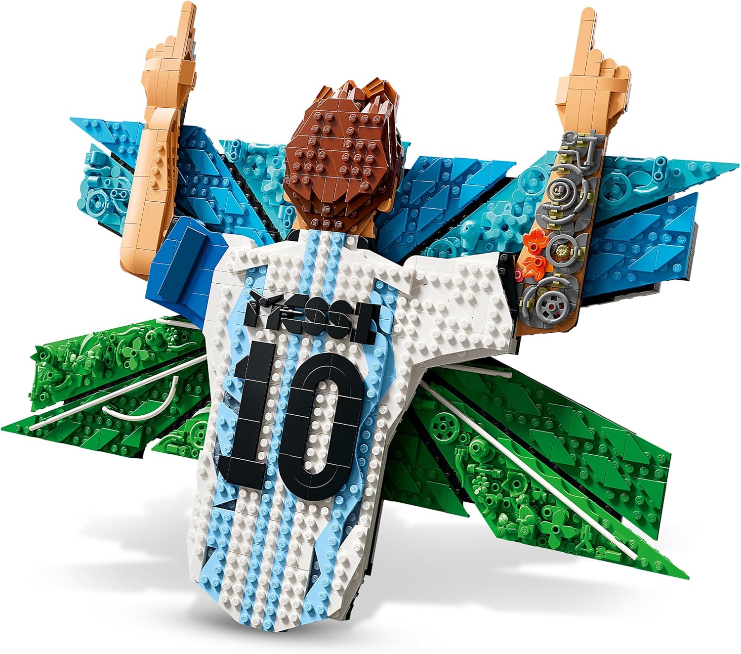 LEGO 43018 Lionel Messi La Célébration. Les amateurs de football et les fans du numéro 10 le plus célèbre de l’histoire vont pouvoir exprimer leur passion d’une manière originale et créative grâce à ce set de construction hors du commun. Conçu pour les adolescents et adultes à partir de 14 ans, ce modèle allie la richesse de la brique LEGO à l’univers du football mondial pour offrir une expérience de construction unique et un résultat spectaculaire.
