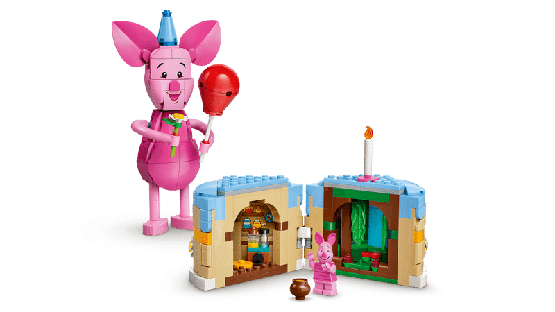 Conçu pour les enfants dès 9 ans, ce modèle propose une construction immersive de 544 pièces, combinant jeu, décoration et narration. Il met en scène un Porcinet articulé, dont la tête, les bras, les pieds et les oreilles peuvent être bougés à loisir, ainsi qu’un gâteau d’anniversaire à construire, décoré d’une bougie et de fleurs.