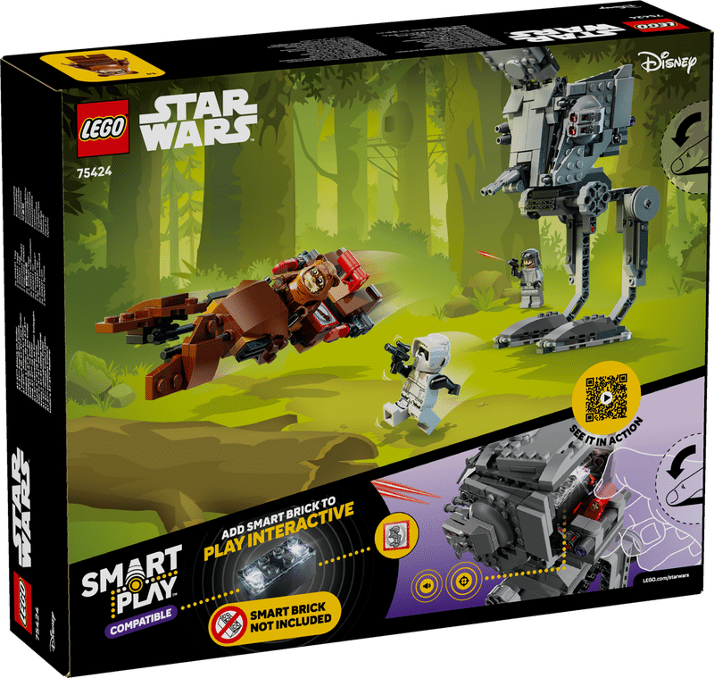 LEGO 75424 Star Wars Attaque AT ST Endor Smart Play. Plongez dans la bataille d’Endor avec le set LEGO 75424 l’attaque du AT-ST sur Endor, un jeu de construction dynamique et interactif inspiré de Star Wars : Le Retour du Jedi.