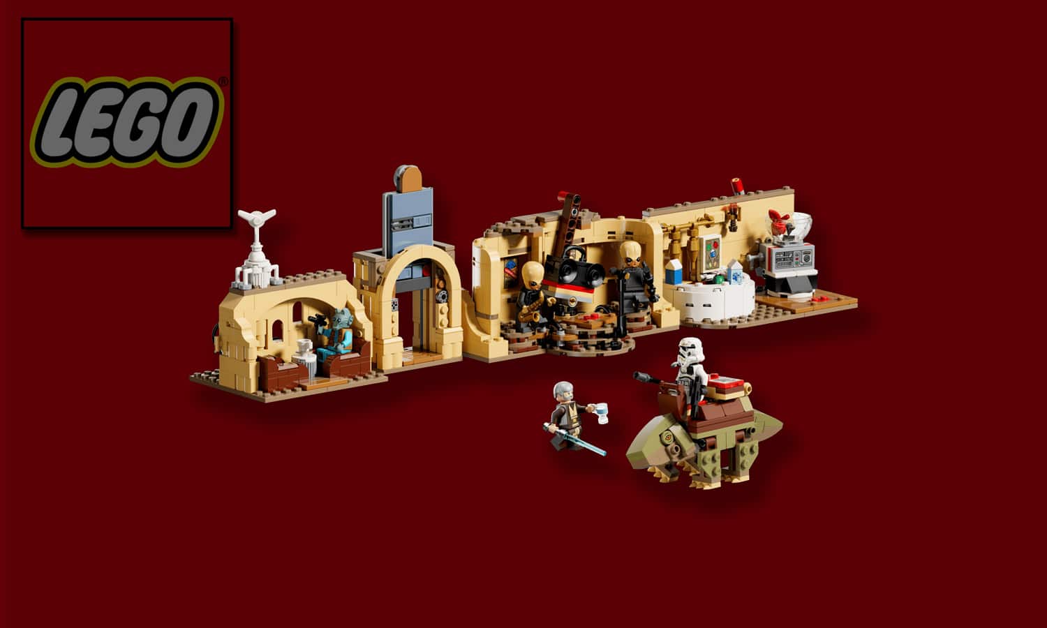 Composé de 4 modules séparables, il facilite le jeu de rôle et regorge de détails amusants, comme un canapé éjectable, un bar avec shaker et verres, une scène musicale et un Dewback à monter pour prolonger l’aventure.