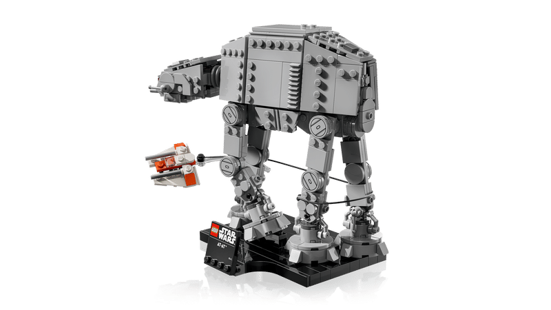 Il propose l’assemblage d’un véhicule AT-AT (All Terrain Armored Transport), accompagné de l’engin rebelle qui le fait tomber, le tout présenté sur une base stable pour une mise en valeur décorative. Des instructions détaillées et un accès à une application numérique viennent compléter l’expérience de montage.