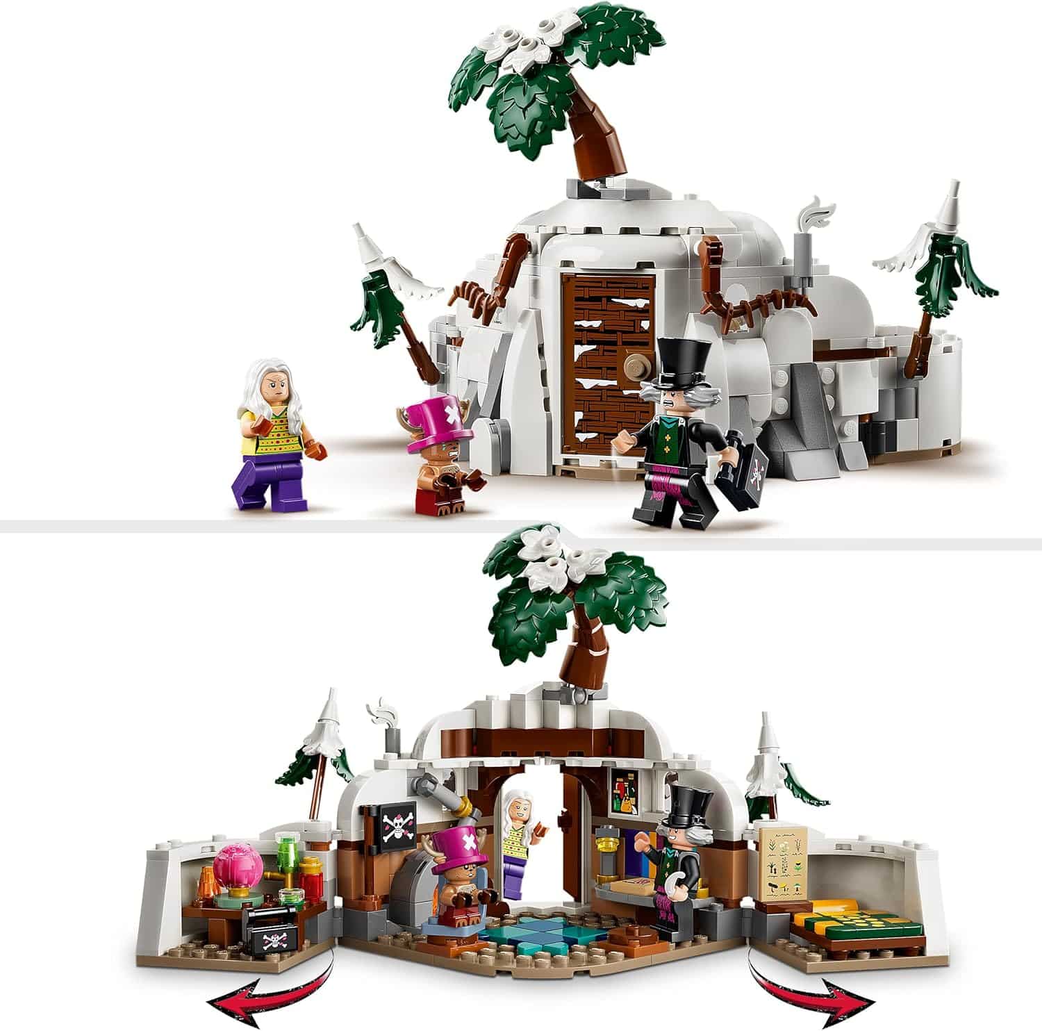 LEGO 75641 One Piece Le Repaire du Docteur Hiluluk. Ce set de construction au format diorama est inspiré de la série Netflix ONE PIECE et reproduit fidèlement le repaire du docteur Hiluluk et de son protégé Tony-Tony Chopper. Conçu pour les enfants à partir de 9 ans, le modèle prend la forme d’une montagne que l’on peut ouvrir pour révéler un intérieur richement détaillé, offrant ainsi une expérience orientée vers la construction, le jeu de rôle et l’exposition décorative.