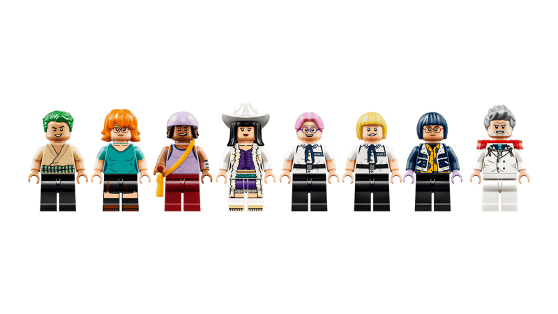Le set comprend 8 minifigurines représentant des personnages emblématiques de ONE PIECE. On y retrouve Zoro, Usopp, Miss All Sunday, Nami, Tashigi, Hermep, Kobby et le vice-amiral Garp. Cet ensemble de personnages couvre à la fois des membres de l’équipage du Chapeau de paille et des représentants de la Marine, ce qui permet de reconstituer des confrontations et des interactions fidèles à la série.