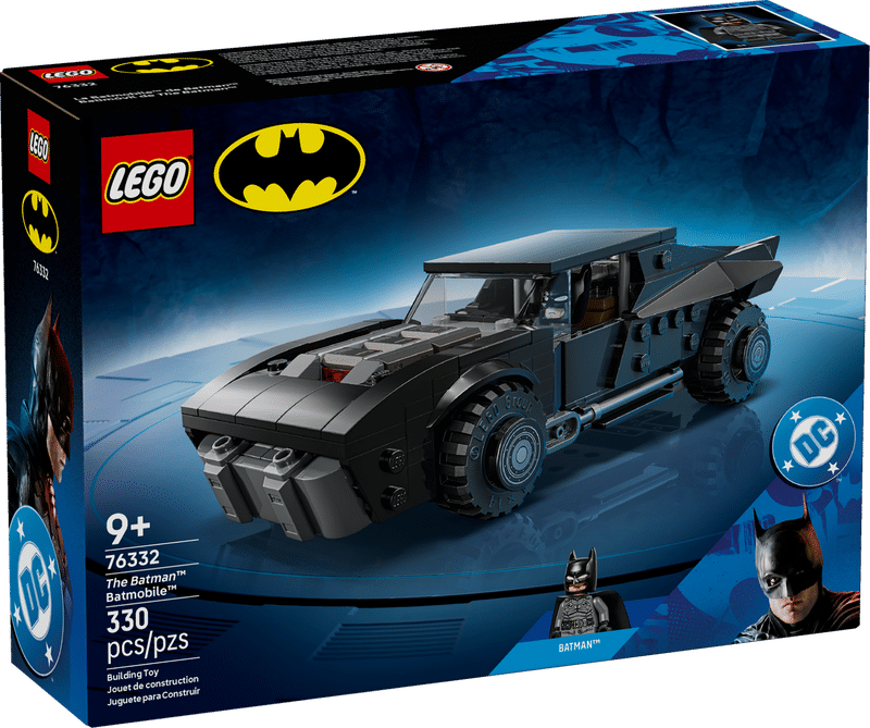 LEGO 76332 The Batman Batmobile. Cet ensemble offre la possibilité de construire un véhicule emblématique issu d’un film de super-héros, pour les amateurs de modèles à assembler et de licences célèbres. Il est conçu pour un public dès 9 ans, avec des détails fidèles à l’adaptation cinématographique et inclut une minifigurine du personnage principal, sa cape en tissu ainsi que plusieurs accessoires associés. Un aspect commémoratif met en avant l’anniversaire de la collaboration entre la marque et la franchise, intégrant une pièce dorée exclusive à cette édition.