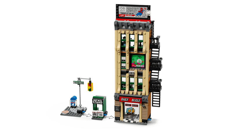 Le Daily Bugle n’est pas qu’un simple décor : c’est un véritable symbole de l’univers Spider-Man. Ce set rend hommage au siège du journal où J. Jonah Jameson critique sans relâche le justicier masqué. Il offre un cadre de jeu vertical, parfait pour mettre en scène des cascades aériennes ou des affrontements épiques sur la façade et l’escalier de secours.