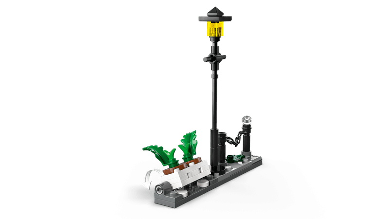 Une reproduction miniature de la rue emblématique où le héros vit durant son enfance complète le décor. Les éléments inclus sont un lampadaire et deux pots de fleurs permettant d’aménager la scène à sa guise. Cette configuration favorise l’installation d’une atmosphère de suspense fidèle à la séquence originelle, tout en encourageant les enfants à inventer des aventures et des fuites haletantes.