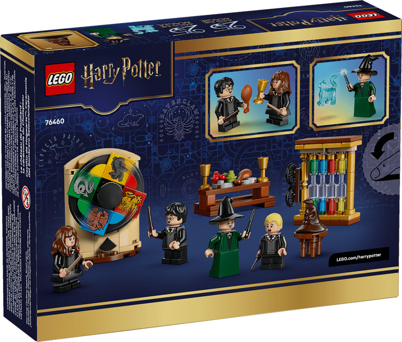 Ce set met en avant la reproduction fidèle d’une cérémonie marquante au sein de la fameuse école de sorcellerie. Les enfants peuvent placer une figurine sur le siège inclus et utiliser le Choixpeau magique, actionné par une roue mécanique, pour déterminer vers quelle maison le personnage sera envoyé. L’aspect interactif de cette mise en scène évoque le suspense de l’histoire originale.