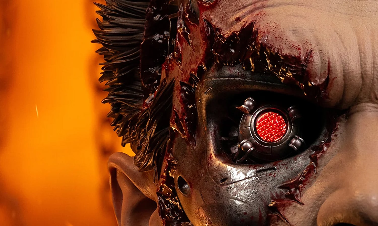 Au-delà des spécifications, la pièce repose sur une logique d’exposition modulable, articulée autour des surfaces endommagées, de la visibilité des composants internes et de l’impact visuel de l’œil lumineux. L’inclusion de la réplique du CPU T-800 endommagé au combat apporte un complément distinct, pensé comme un élément séparé à manipuler et à exposer, dans la continuité du thème technologique et de l’esthétique de la bataille.