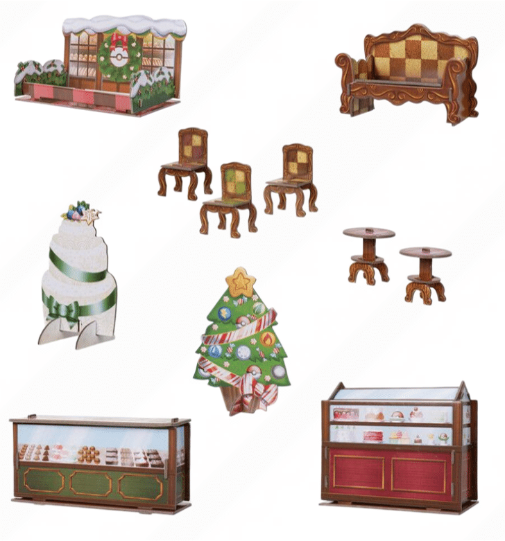 La répartition entre figurines et accessoires donne la possibilité de construire un espace de jeu personnalisé. Certains éléments décoratifs sont développés autour du thème hivernal, permettant de créer des mises en scène ou de composer un décor festif. Toutes les figurines peuvent s’associer aux décors pour imaginer différentes aventures.