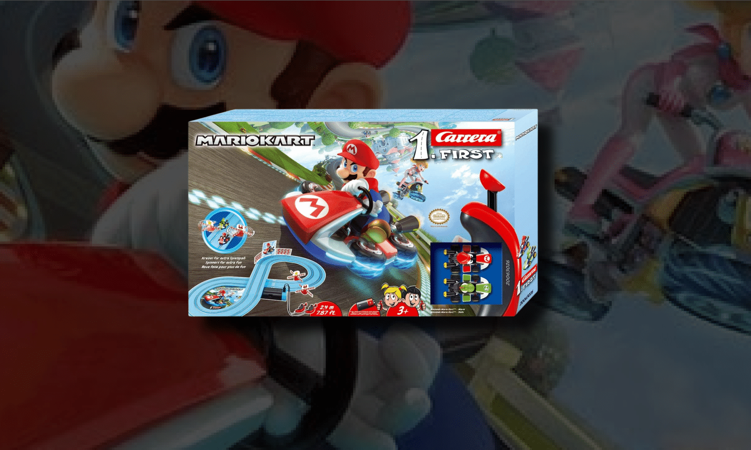 Le fabricant Carrera, spécialisé dans les circuits de course de miniatures et voitures téléguidées depuis de nombreuse années, se fends d’une édition Mario Kart issue de la gamme First (pour les plus petits).