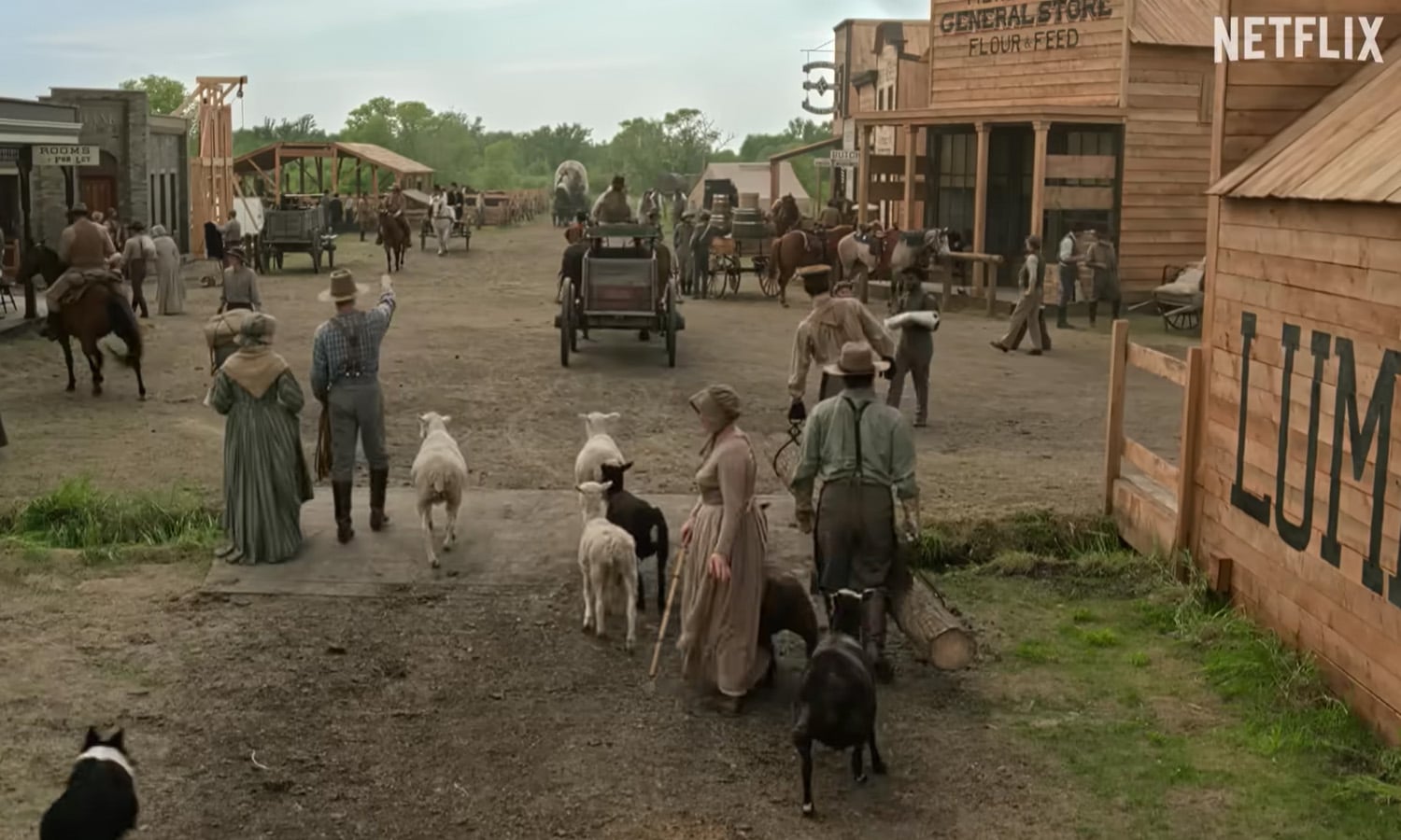 Maintenant, regardez les captures d’écran issues du teaser Netflix. La ville de la prairie, avec son Henderson General Store et sa scierie, ressemble à un décor parfaitement construit, propre, bien éclairé, presque flambant neuf. Les planches sont régulières, les enseignes bien peintes, les rues en terre battue nettement délimitées. Pas un détail ne dépasse. Les personnages qui la traversent semblent sortir d’un catalogue de costumes d’époque de qualité, pas de vrais vêtements portés saison après saison.