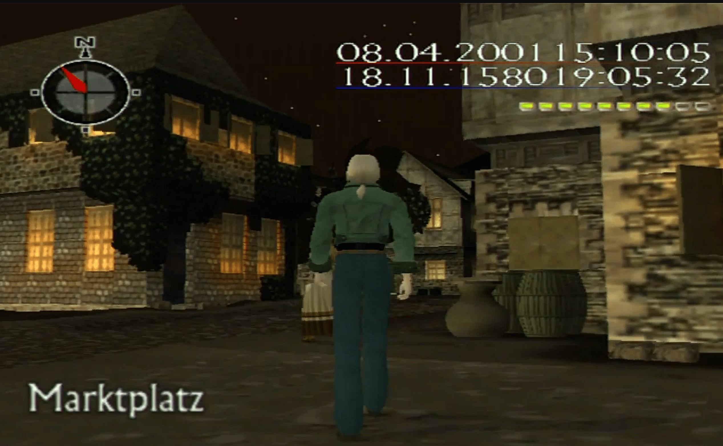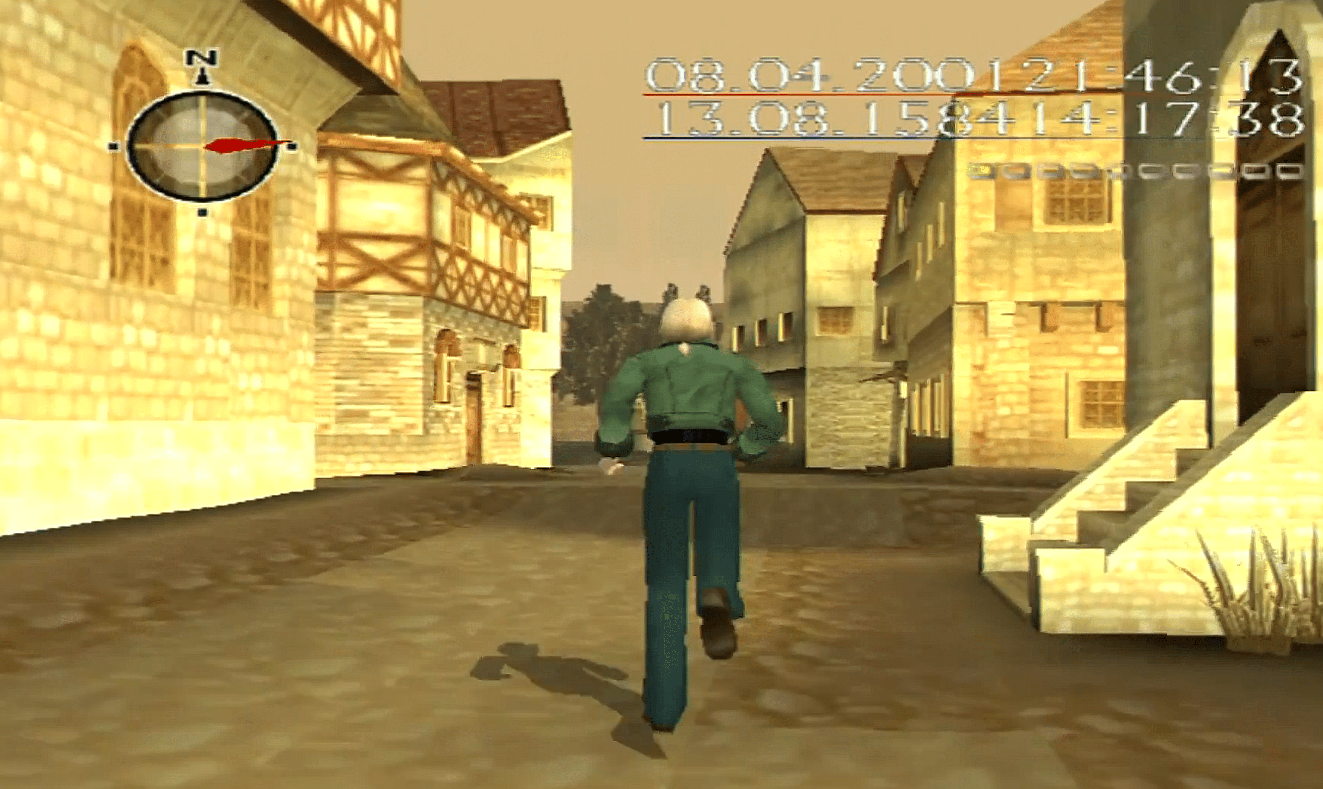 Ce qui rend Shadow of Memories si marquant, c’est aussi son atmosphère étrange et mélancolique. L’ambiance sonore est discrète, presque fantomatique, renforçant l’impression d’être en sursis à chaque instant. Les décors, bien que techniquement modestes pour l’époque, dégagent une vraie identité, avec ce petit air européen désuet qui donne à la ville de Lebensbaum des allures de carte postale figée dans le temps.