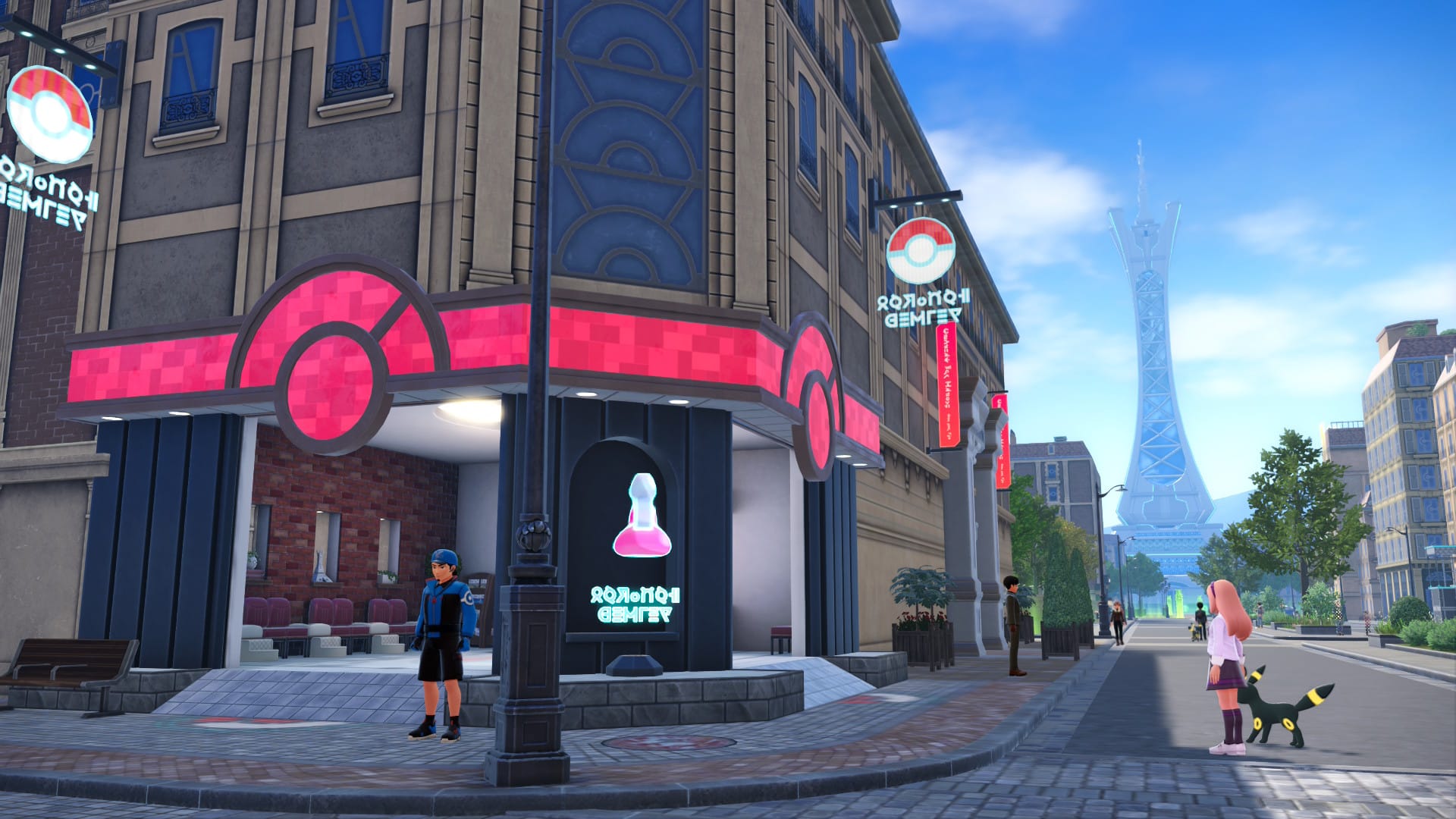 Ce phénomène mondial nous a fait visiter de nombreuses régions, de Kanto à Johto, et aujourd’hui Illumis. Cette ville évoque immédiatement une capitale bien connue : Paris. On peut même y boire un café chez Maurauge. Pour les habitués de la franchise, Illumis ne sera pas une découverte totale : il s’agit bien de la même ville que dans Pokémon X/Y sur Nintendo 3DS. En revanche, techniquement et mécaniquement, beaucoup de choses ont changé.