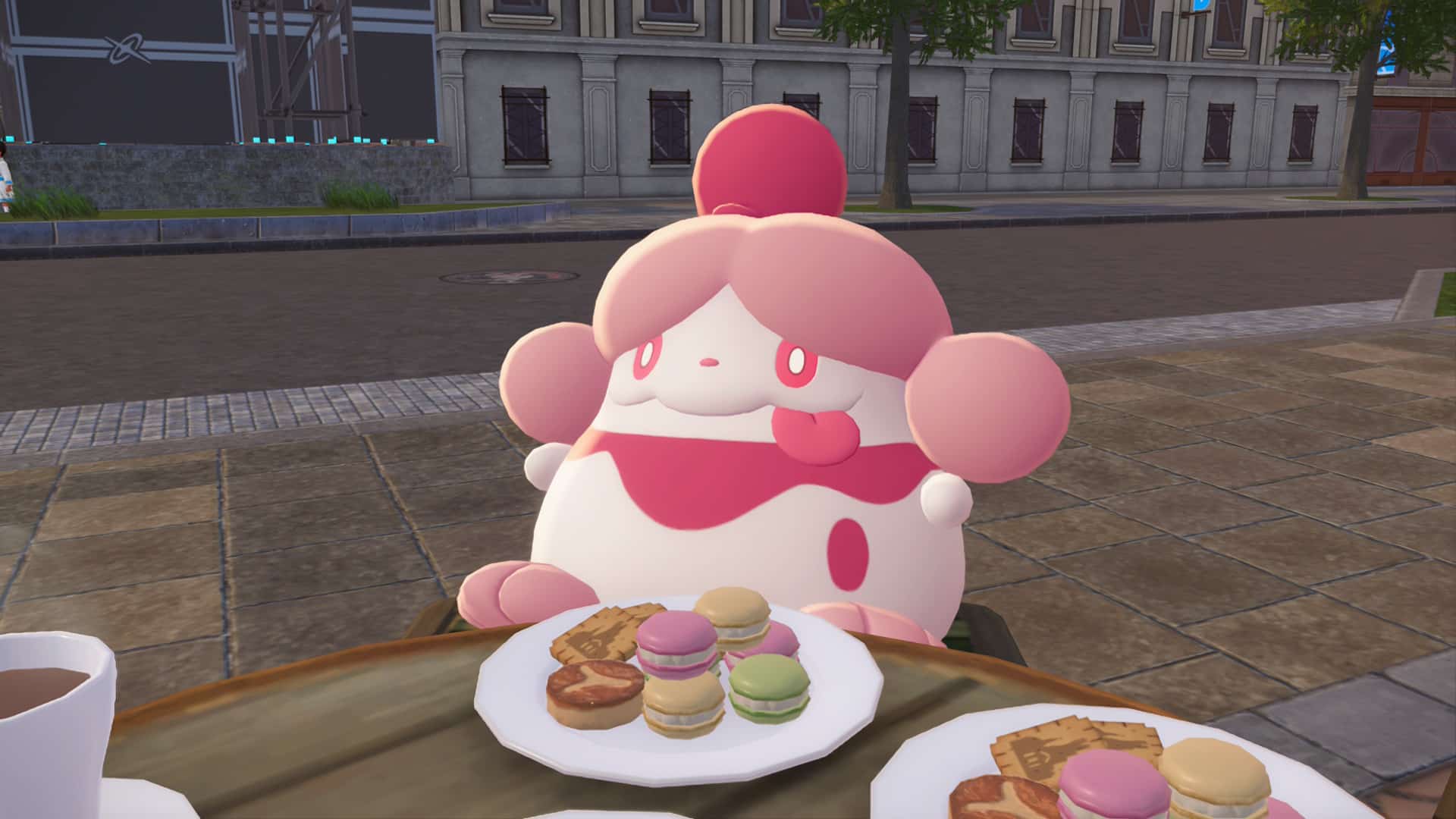 La ville regorge de Pokémon, de magasins plus ou moins haut de gamme, de cafés et de Centres Pokémon. Paris oblige, les prix sont parfois exorbitants. Et puisqu’on parle de la France, impossible de ne pas évoquer la gastronomie… enfin, celle revisitée par Nintendo. Ici, notre personnage mange des croissants… au curry. Un sacrilège culinaire assumé.