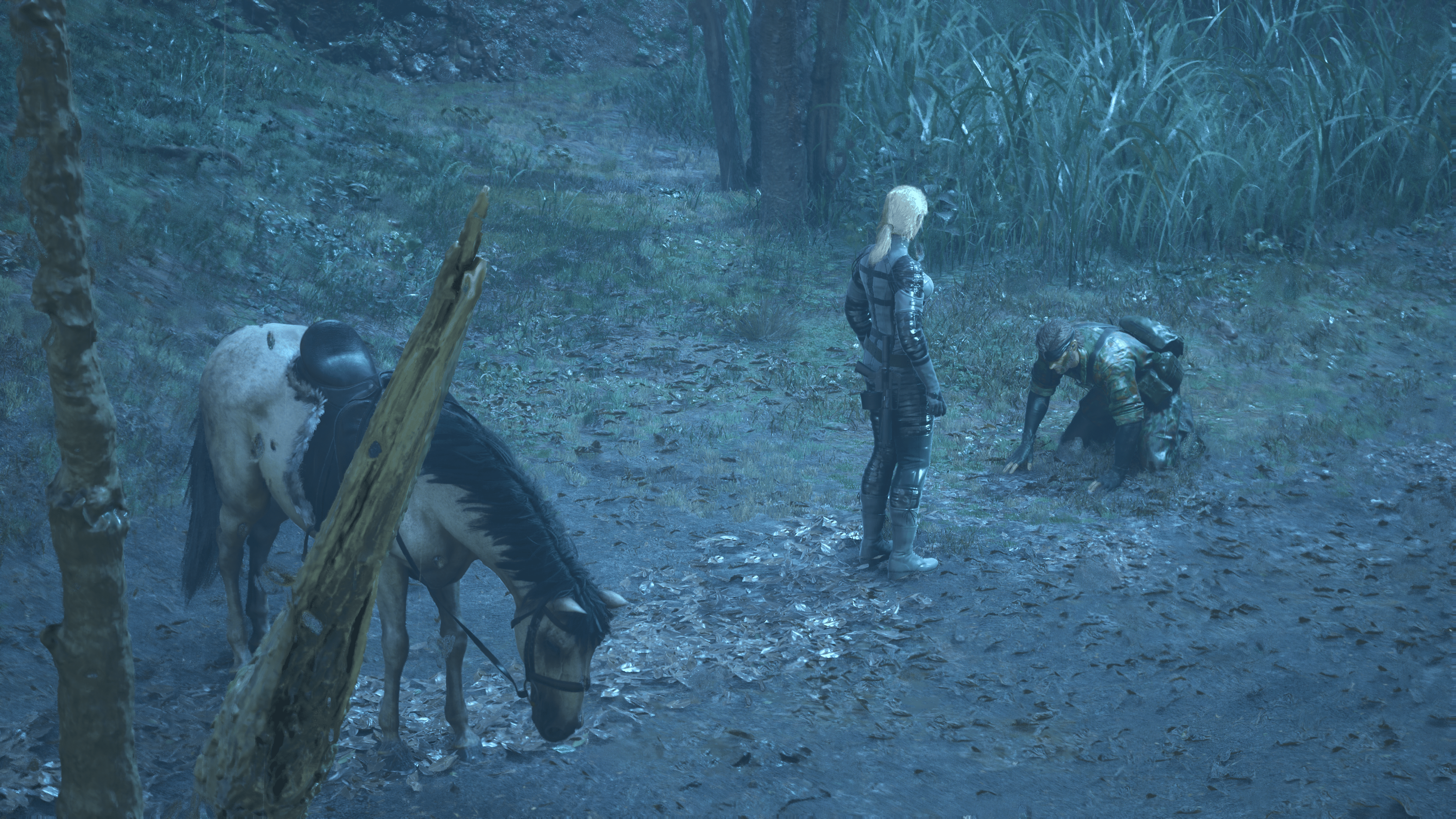 Avec Metal Gear Solid, il faut de toute façon accepter de poser la manette de temps à autre pour suivre de longs dialogues — parfois un peu ampoulés, souvent grandiloquents — sur la guerre, la place du soldat ou encore la définition de l’ennemi, bref, tout le tralala. Je me moque, mais ces passages pourraient facilement paraître forcés ou artificiels. Heureusement, pour peu qu’on se laisse porter, le charisme des personnages et la qualité de la version originale font passer la pilule sans mal.